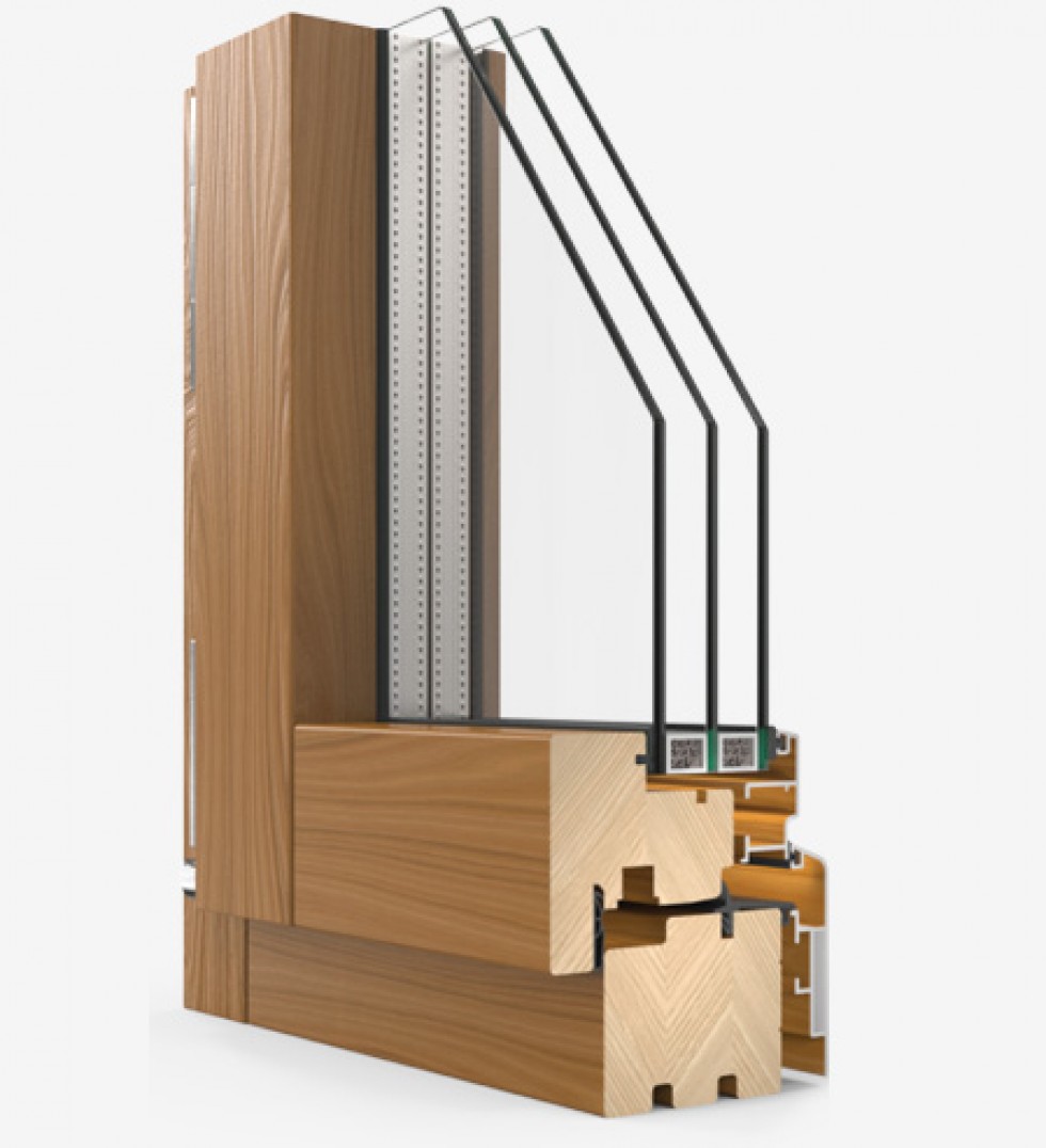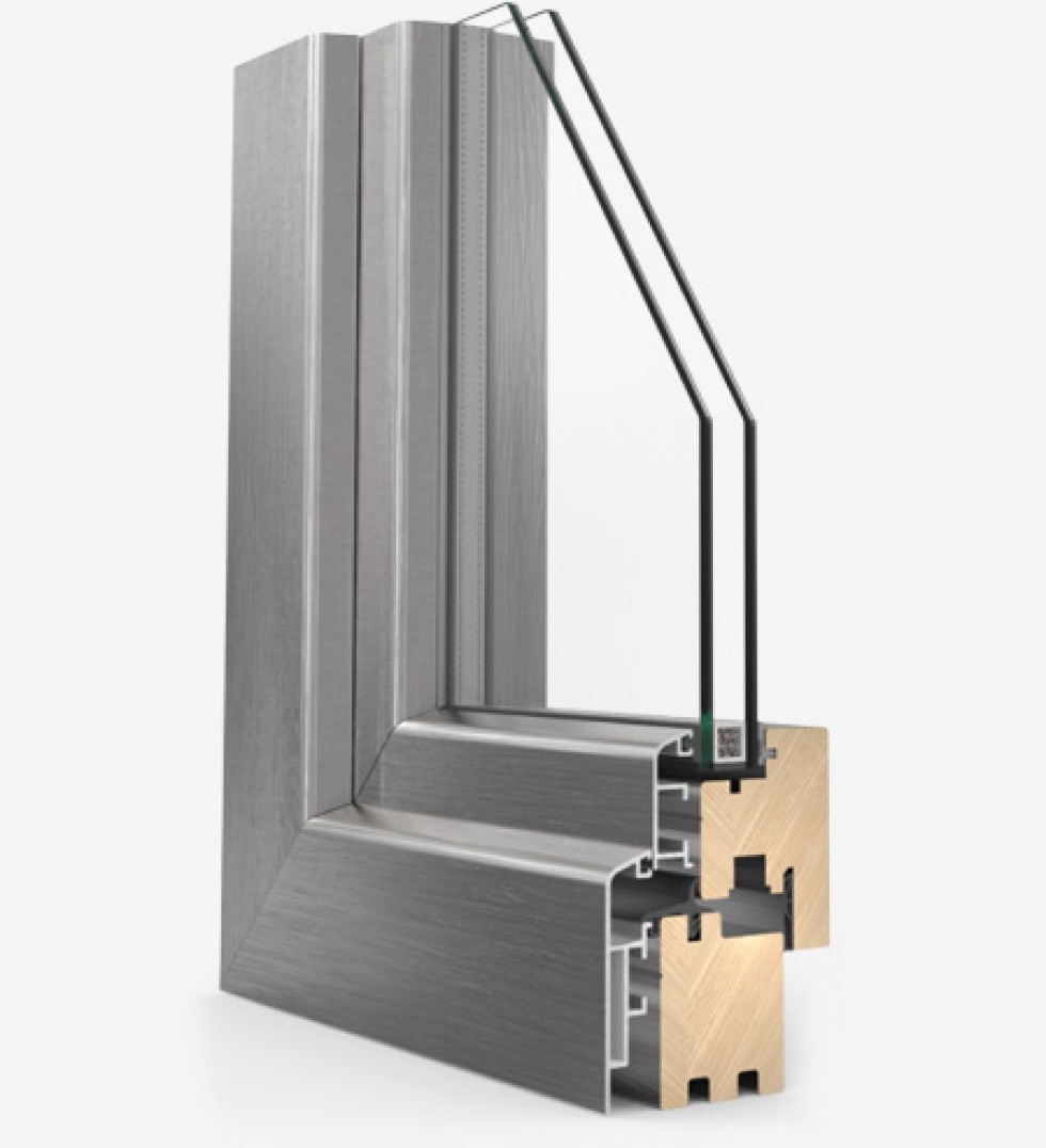 Infissi realizzati interamente in legno con un rivestimento esterno in alluminio. Due sono i profili più utilizzati: